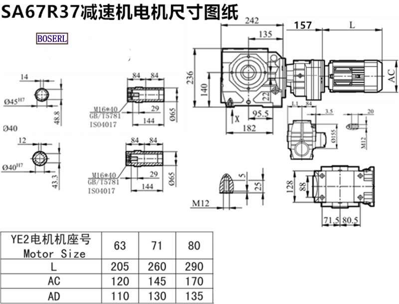 | 自鎖減速機 | SA69R39Y63M4 | SA69R39DRS71M4 | SA69RF39Y0.37KW |